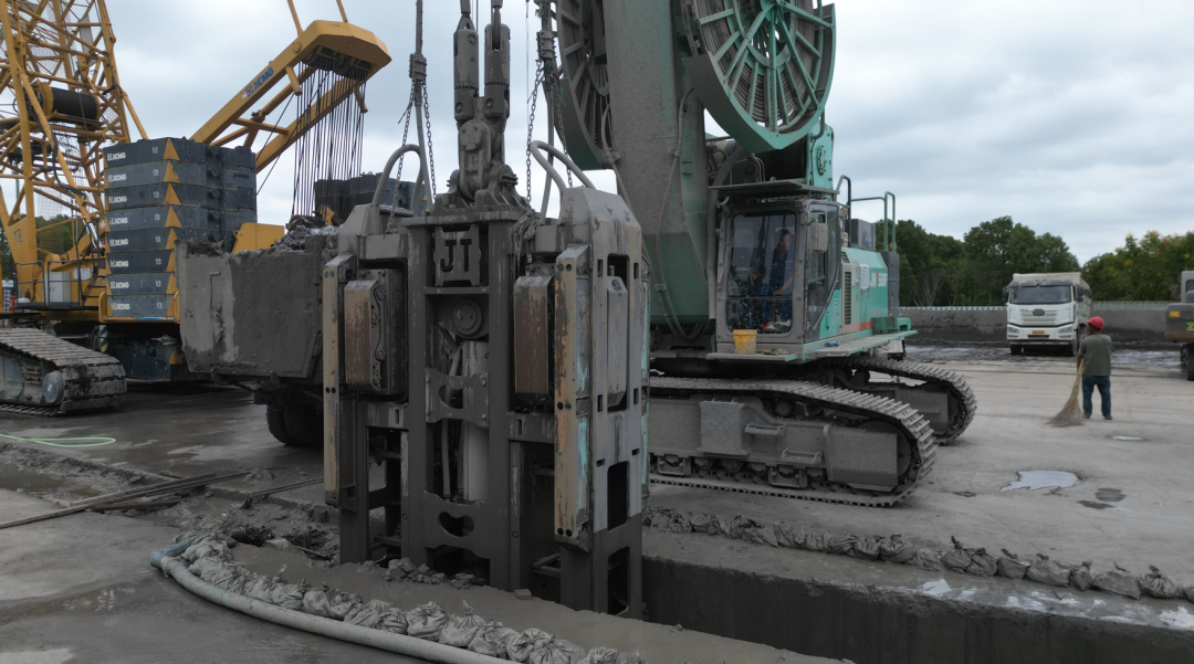 在此背景下,金泰抓斗凭借其先进的液压驱动系统、精准的纠偏控制技术和高效的成槽能力,成为项目施工的首选设备。该项目槽宽1.2米,槽深61米,总计280幅槽,目前完成已完成100幅。平均10小时可完成一幅。项目施工团队对金泰抓斗的表现给予了高度评价。项目部经理表示:“经过过往的多个案例反复验证,金泰抓斗在复杂地质条件下的稳定性和高效性令人印象深刻,其精准的成槽垂直度和强大的成槽能力,有效保障了施工进度和质量安全,为项目顺利推进提供了坚实保障。”